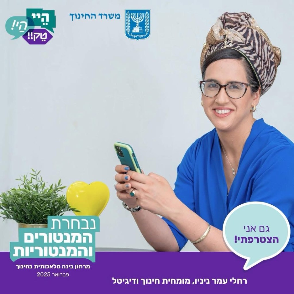 בחודש פברואר השתתפתי כמנטורית ביוזמה הלאומית של משרד החינוך לציון חודש הבינה המלאכותית בחינוך – מיזם שמטרתו לחשוף את צוותי ההוראה והתלמידים לעולם ה-AI ולבחון איך הוא יכול לשדרג את ההוראה והלמידה.